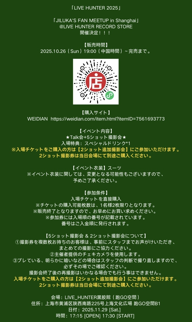 2025.10.26(Sun)19:00(中国時間)~完売まで。